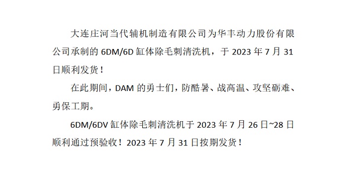 熱烈慶祝華豐動力6DM/6DV缸體除毛刺清洗機順利發貨!